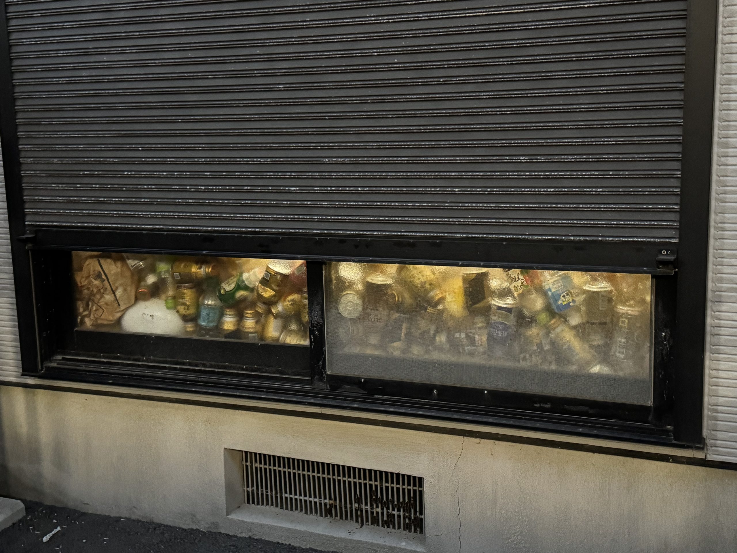 要は空き缶を窓側に並べているのよ。